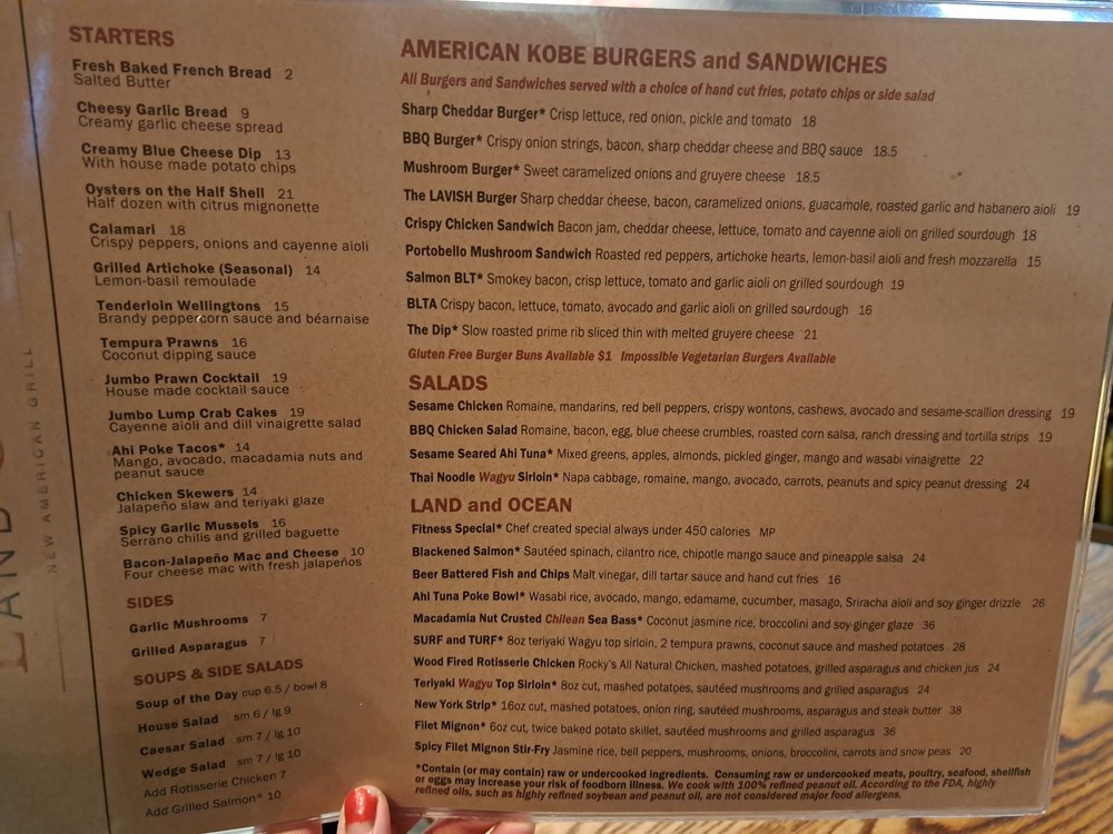 Introducing the Menu at Land Ocean New American Grill - Roseville